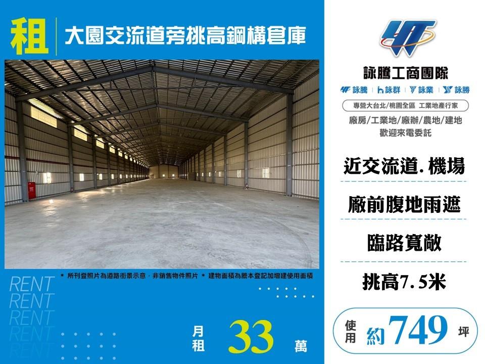 1.臨路 約8米 2.挑高 約7.5米 3.電力 三相220V 4.近大園交流道及桃園機場,交通極為便捷,備消防設備 5.廠房四方好利用規劃物品存放擺設