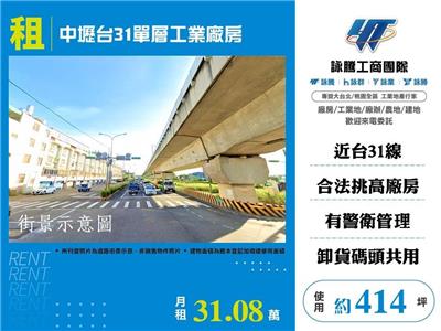 4.近台31線,廠區綠化美觀,有警衛管理(管理費含租金內),貨櫃車等大車可進出
