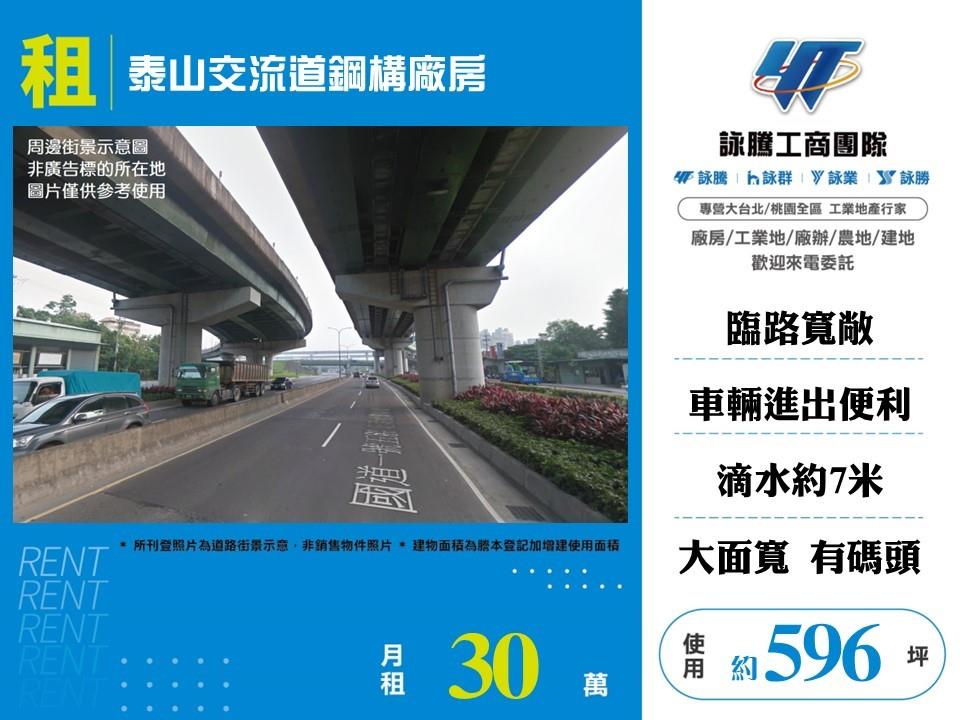1.臨路 約7米 2.挑高 約7米 3.電力 220V 4.大面寬、有碼頭、臨路寬敞、車輛好進出 5.近台65線快速道路、泰山捷運站、五股交流道,交通便捷