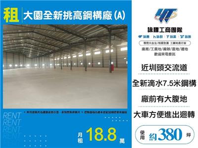 1.臨路 約4米 2.挑高 約7.5米 3.電力 19馬 4. 近61快速道路、桃園機場,交通便利 5. 廠區四方 好規劃使用