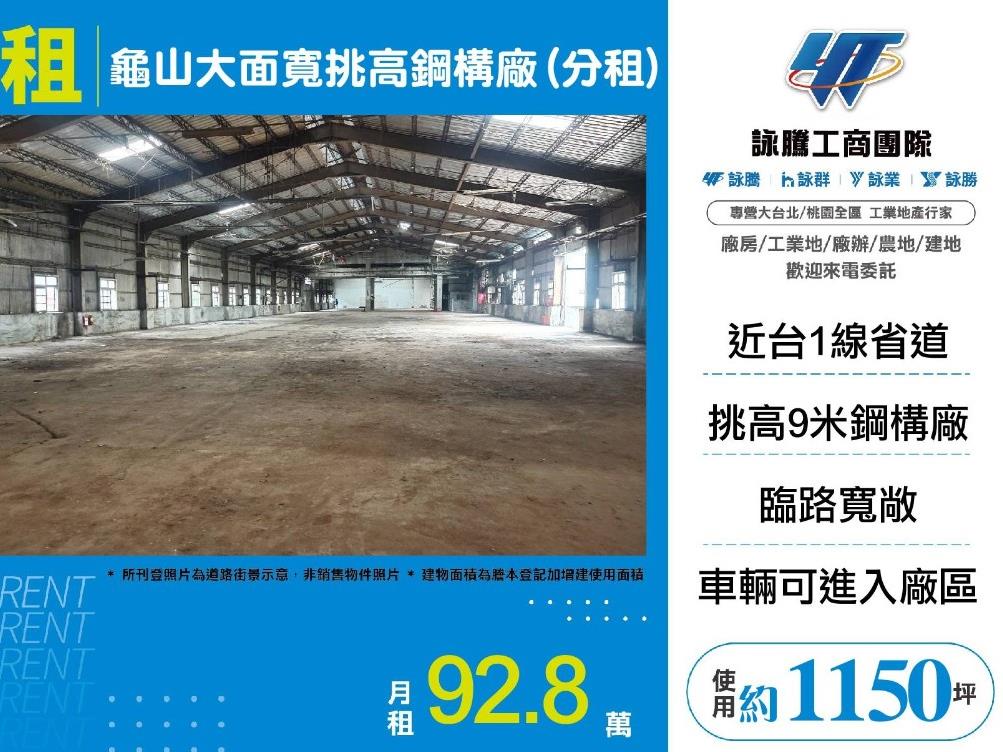 龜山大面寬挑高鋼構廠(分租) (FY09929)