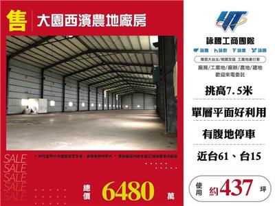 ※挑高8.5米 ※臨路6米 ※電力設備三相220V ※有天車 ※鄰近61快速路 ※有空地好停車 ※近大園工業區