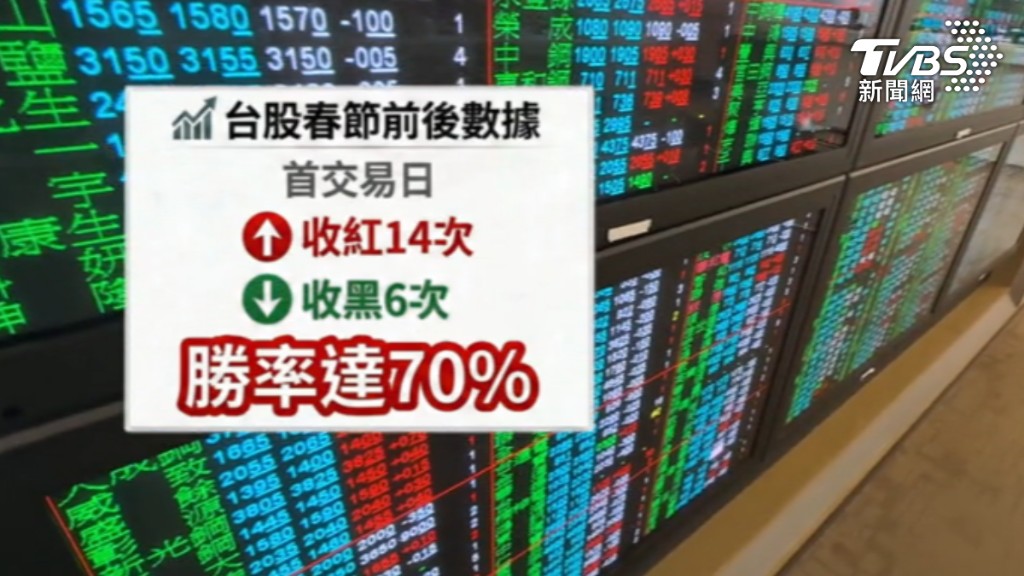 下跌原因之一也跟台股封關日2月11日倒數有關。統計近20年來,台股春節後首日收紅盤多達14次,6次收黑,一個月後大漲機率還高達80%,做好防線不用過度恐慌。