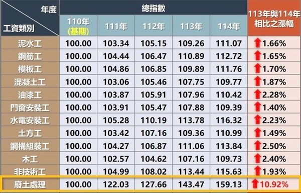 統計顯示,截至2月,廢土處理指數已攀升至199.55,反映其對開發時程與財務壓力的實質衝擊。