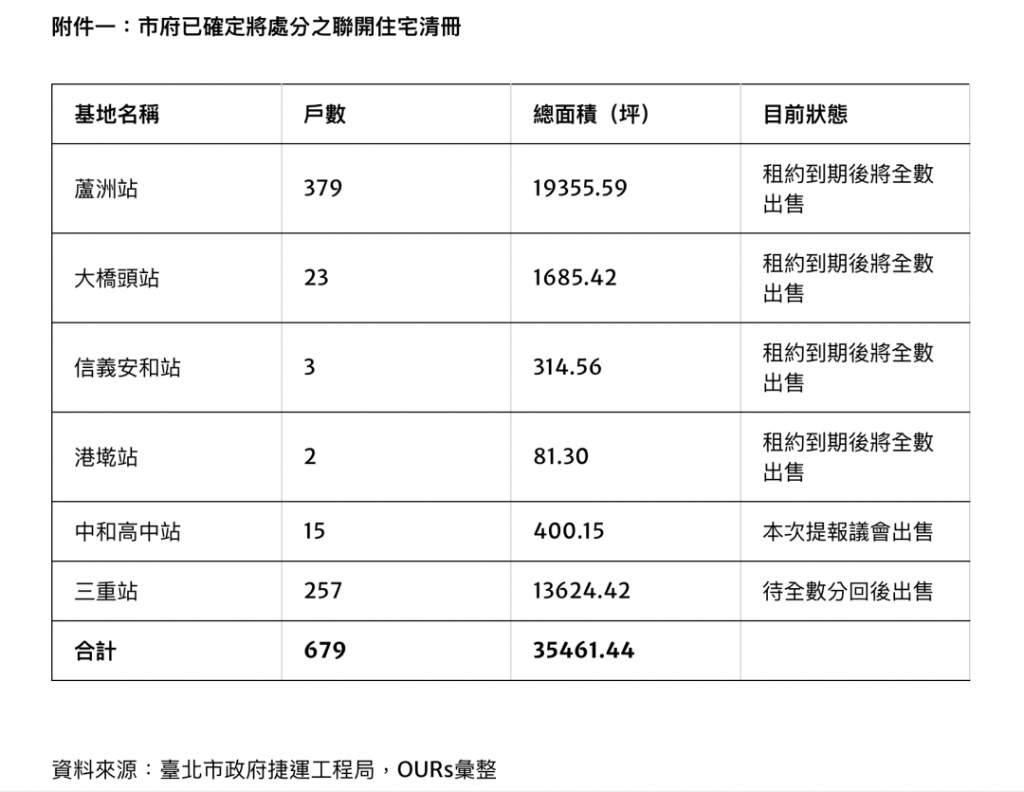 民團指出,據目前掌握,捷運局目前已確定出售聯開住宅共679戶,35461.44坪住宅;更有甚者,未來24個進行中的聯開案所取得的不動產,均將依此模式出售,規模達72,698坪以上。